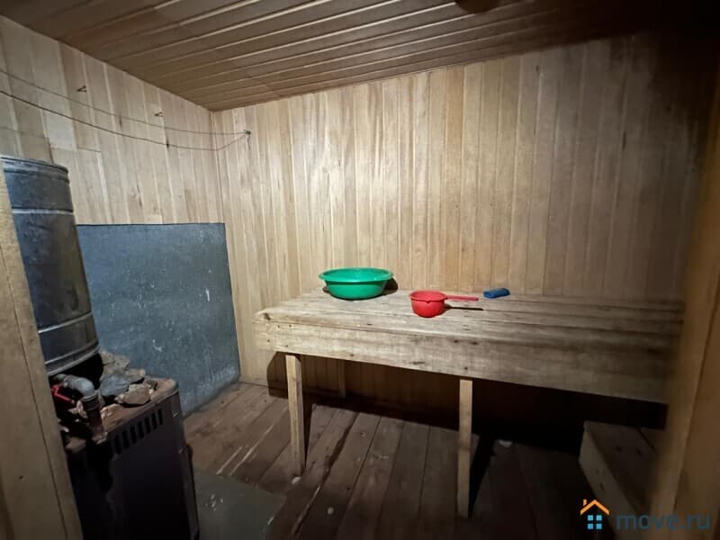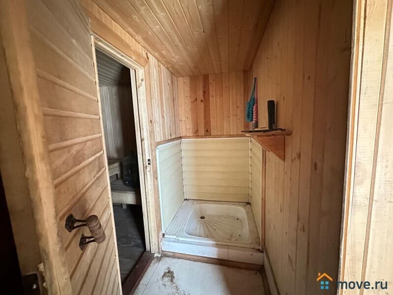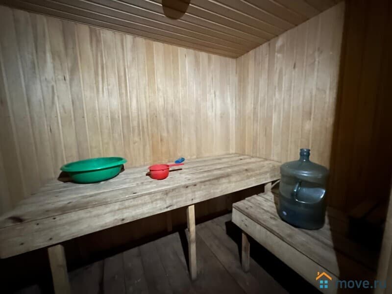 Также на участке есть баня площадью 15 кв.м. из бруса 150 х 150 мм на ленточном фундаменте. В бане: парная, помывочная, раздевалка, чердак.