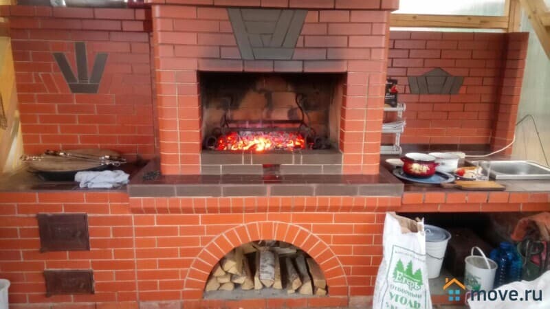 На участке также имеется беседка 4*6 - типо летней кухни, в ней обустроен комплекс для барбекю и газовая плита, на которой можно полноценно готовить в летний жаркий день; также имеются бытовка и контейнер для хранения инвентаря. На участке располагается прудик с лилиями и молодой плодоносящий сад.