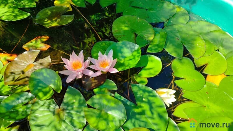 Также на участке расположена бытовка и контейнер, для хранения инвентаря. Имеется прудик с лилиями и молодой плодоносящий сад.