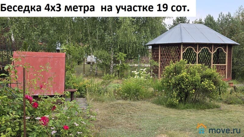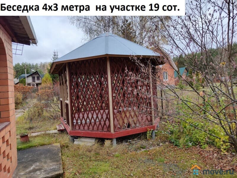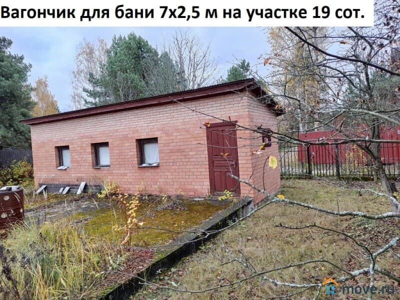 Гараж кирпичный 8х5 метров с бетонным фундаментом, вагончик для бани обшитый кирпичом 7х2,5 метров, беседка шестигранная 4х3 метра, навес арочный. Душ летний, туалет на улице. Грядки теплицы 3х6 метров.