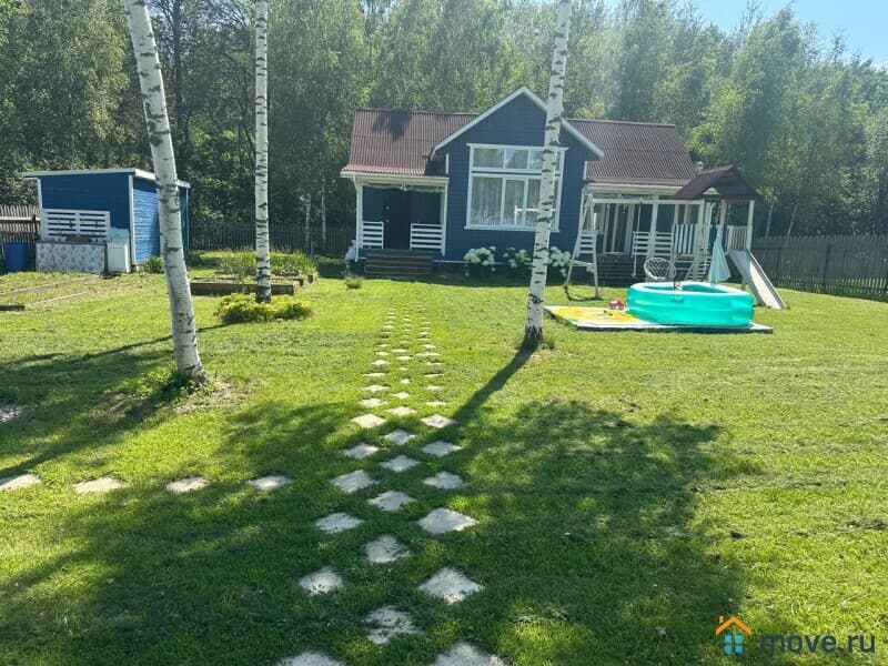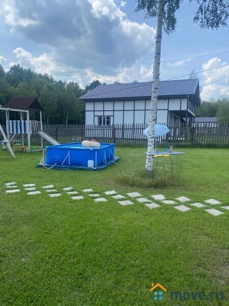 На участке посажен газон, парковка на 2 авто, тропинки, детская площадка, бытовка, теплица, грядки, высажено несколько кустов. Мягкие окна на террасе и крыльце.