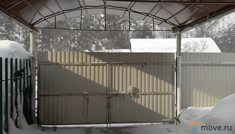 Участок 24 сотки (ЛПХ). Песчаный грунт, сухой, с плодоносящим садом. На участке расположены бревенчатая баня и навес для автомобиля. Забор из металлопрофиля и металлического штакетника. Установлены распашные ворота в зоне навеса и дополнительные ворота для заезда крупной строительной техники.