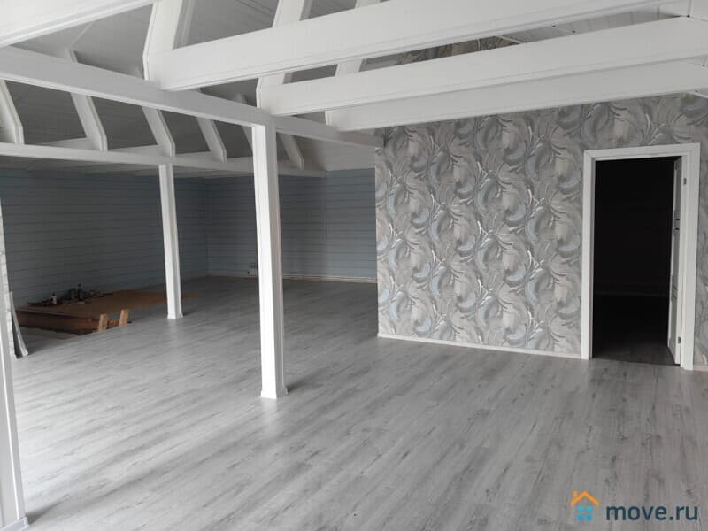 На первом этаже находятся: отапливаемая прихожая, котельная, санузел + сауна, гардеробная, спальня. По первому этажу везде теплые полы.