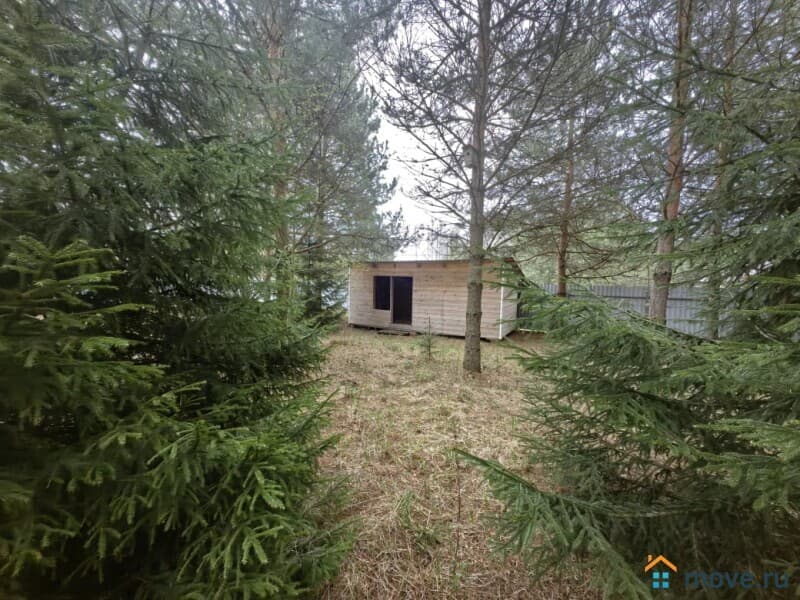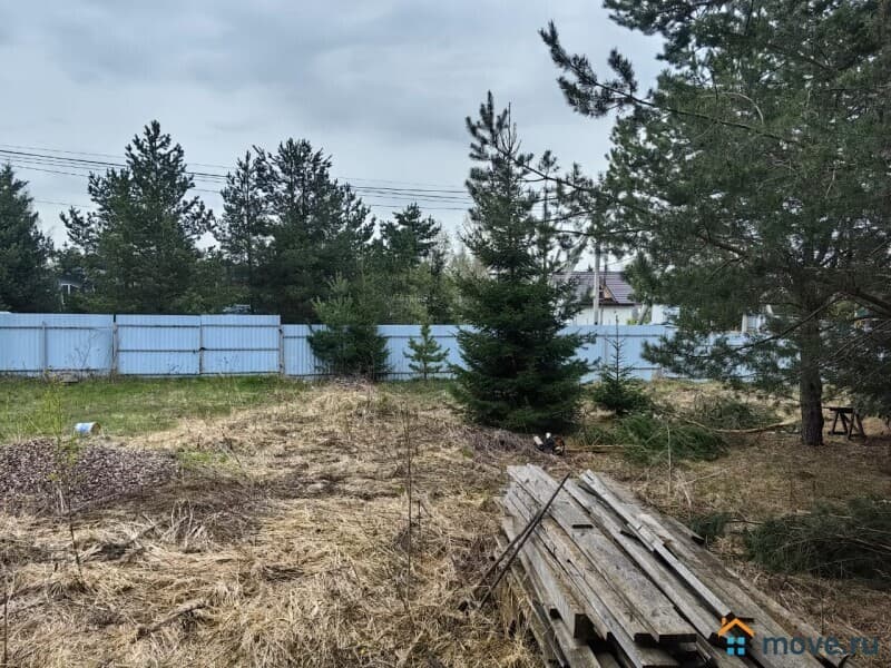 Дом расположен на ровном, сухом земельном участке площадью 15 соток. Участок огорожен забором из металлпрофиля. На участке имеется хозблок, растут сосны.